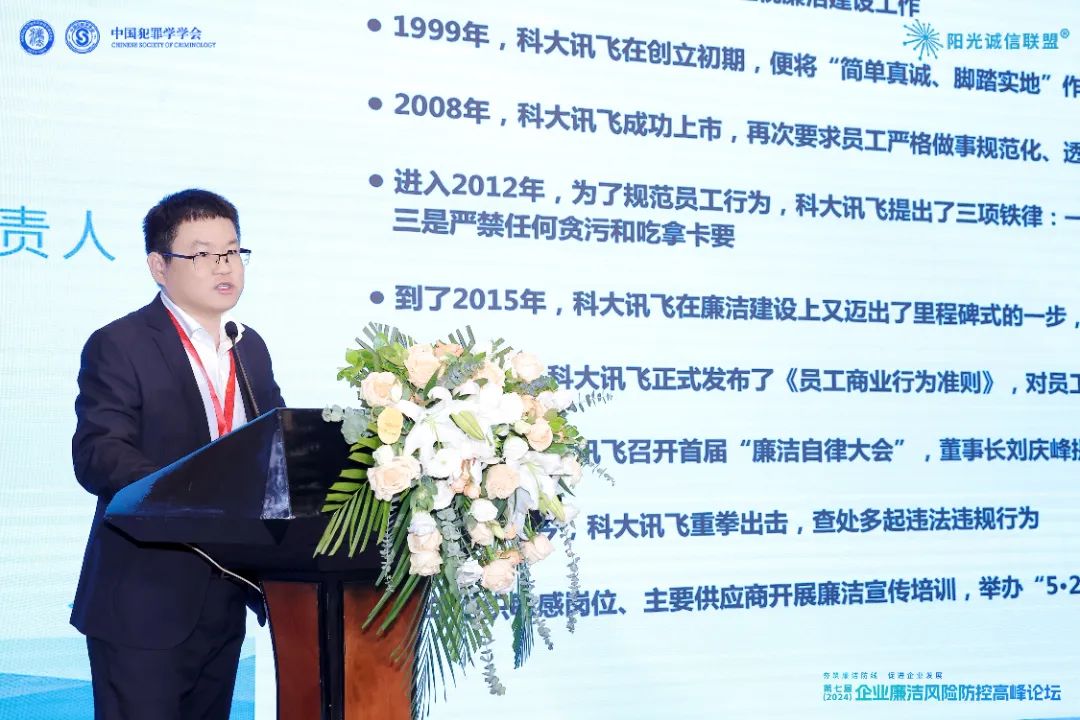 在企业廉洁风险防控与内部腐败治理的技术应用方面,科大讯飞审计监察数字化负责人琚兴、京东集团CCO体系合规技术部总监田欣、美亚亿安数智风控调查研究中心总监吴江煌分别就数字化审计、AI与大数据应用、人工智能应用等议题介绍了实践经验。