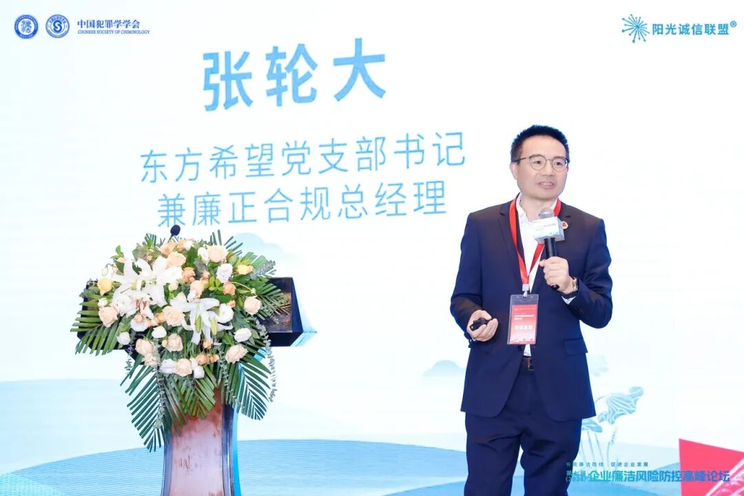 东方希望党支部书记兼廉正合规总经理张轮大分享了“党建引领企业廉洁诚信文化”的实践经验。